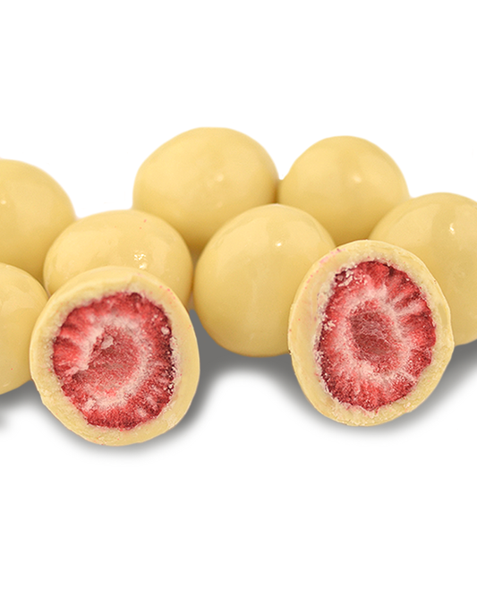 White Premium Couverture Chocolate Coated Freeze Dried Strawberries 150g