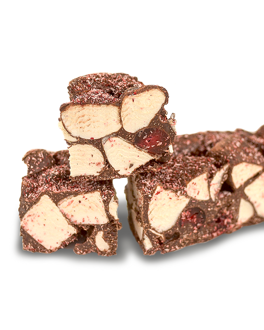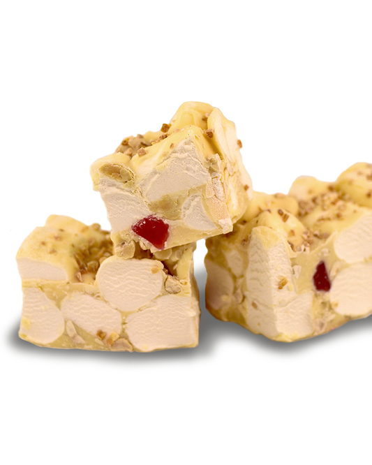 Raspberry Jellie & Roasted Peanuts White Choc Rocky Road 300g