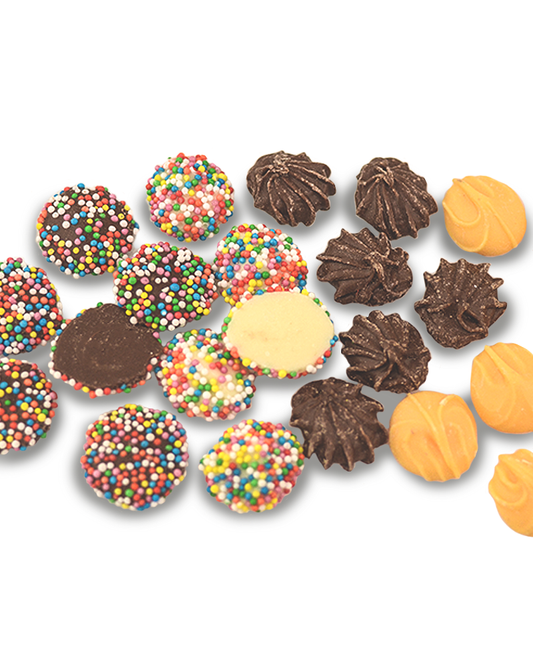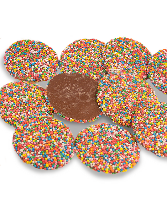 A real nostalgic treat, in Milk or White choc topped with crunchy coloured speckles.