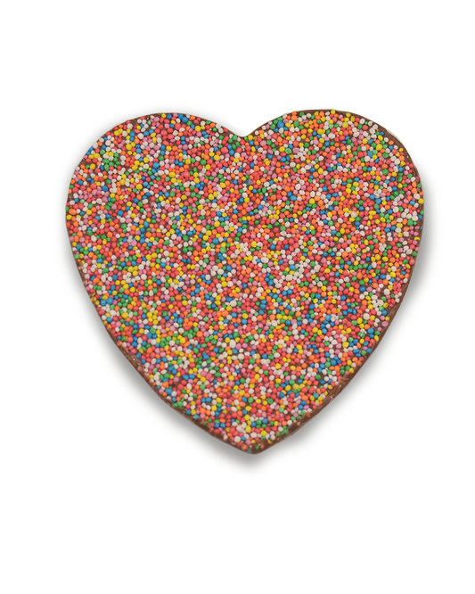 Red Freckle Heart Milk Choc, topped with 100s and 1000s 150g